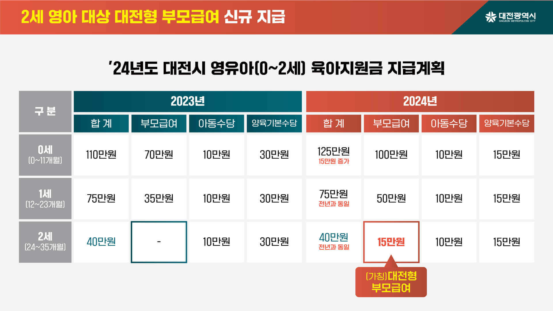 2세 대상 대전형 부모급여