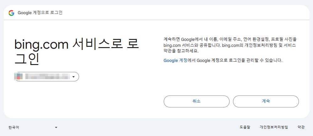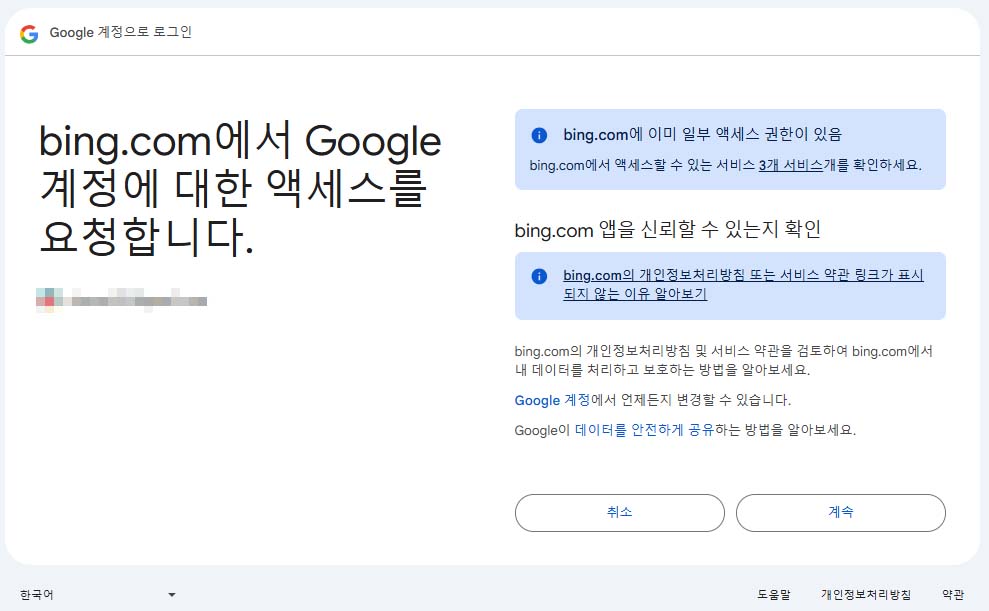 '계속' > 계정 선택 > '계속' > '계속' 을 선택하면 다음과 같은 화면이 나옵니다.