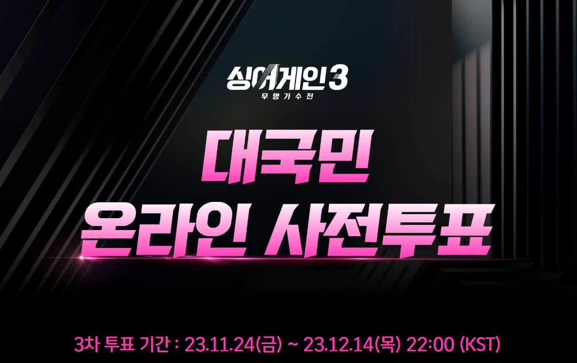 무명가수들의 꿈과 희망이 되고 있는 싱어게인이 시즌 3으로 돌아왔습니다. 우리나라에 이렇게 멋진 가수들이 많이 숨어 있다는 사실을 볼 때마다 느끼고 감동하고 있는데요. 싱어게인 우승자는 가리는 데는 시청자의 투표가 중요한 역할을 하는데요. 오늘은 싱어게인 대국민 온라인 사전 투표하는 방법에 대해 알려드립니다.