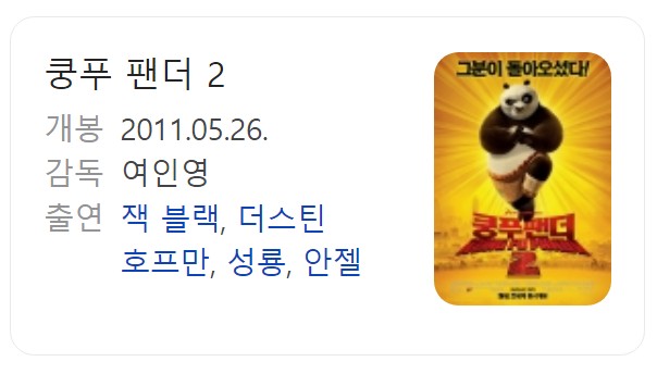 추가로 한국어 더빙 출연진을 살펴보면 포 역에 엄상현님, 젠 역에 김나율님, 카멜레온 역에 성선녀님, 시푸 역에 김기현님 등이 있습니다.